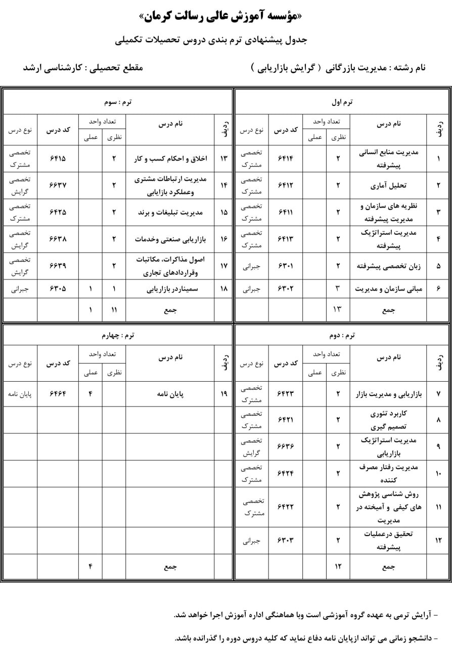 کارشناسی ارشد مدیریت بازرگانی گرایش بازاریابی |